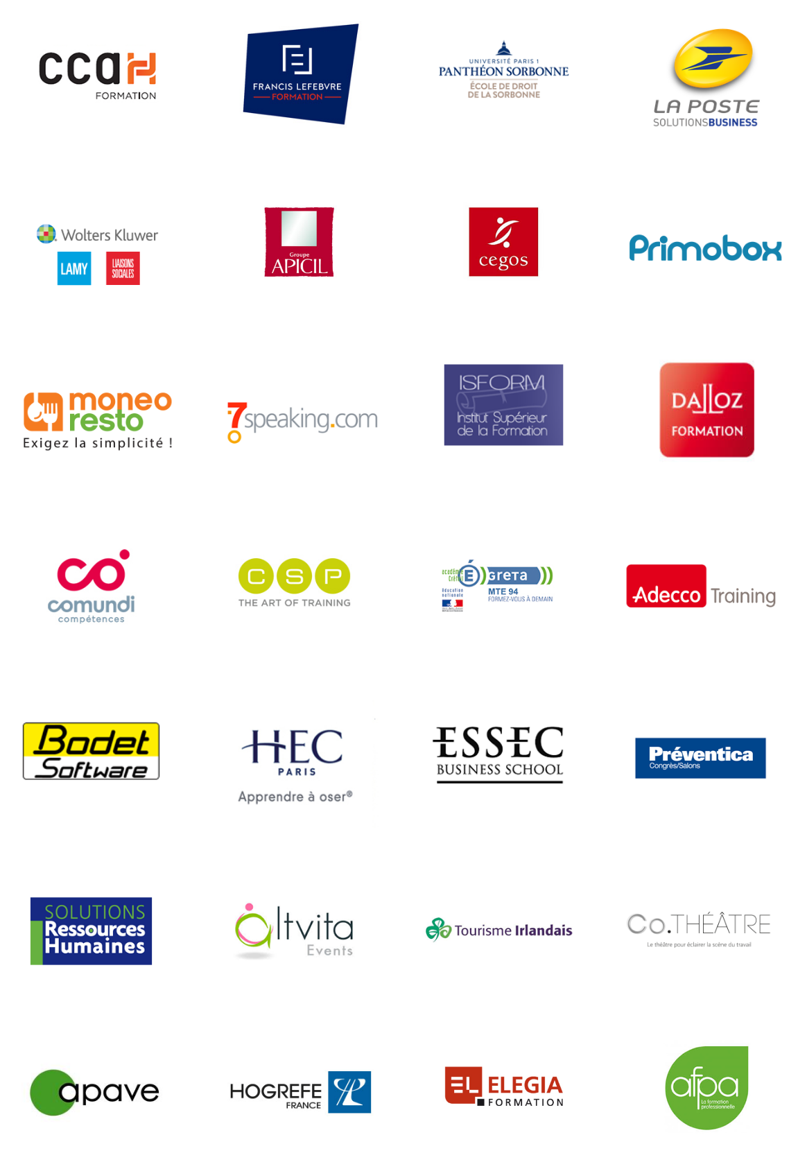 Notre fichier RH, Formation et Paie vous permet de prospecter sur une base de données de qualité. Ce fichier vous assure des retours qualifiés avec une fiabilité testée par les principaux acteurs du marché : CEGOS • 360 Learning • Afpa • Telelangue • Cercle RH • ESSEC • PRIMOBOX • IGS Formation • EFE • Groupe Chèque Déjeuner • ELEGIA Formation • Wolters Kluwer France • CSP Formation • HEC • Editions Législatives • RS Management • IFG KNOF • Editions Tissot • Solutions RH • IRH • Demos • La Banque Postale …